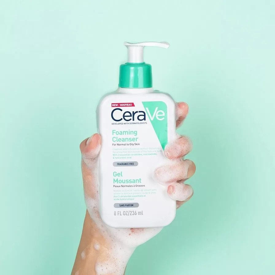CeraVe Foaming Cleanser is a gentle yet effective face wash designed for normal to oily skin. This non-drying foaming formula removes excess oil, dirt, and makeup without disrupting the skin's natural protective barrier. It contains three essential ceramides, niacinamide, and hyaluronic acid to restore the skin's barrier and retain moisture while soothing irritation. This cleanser provides a refreshing clean feeling without leaving the skin feeling tight or dry, making it ideal for daily use.