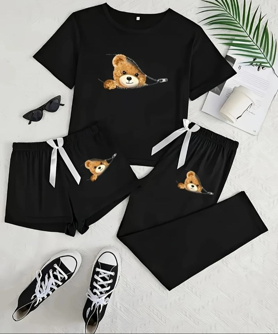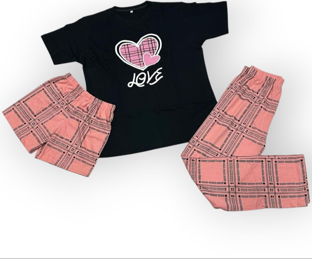 Stay cozy and stylish with our 3 Piece Night Suit, designed for comfort and elegance. Made from premium cotton jersey fabric, this set includes a T-shirt, shorts, and trousers – giving you the perfect balance of style and relaxation for every mood.